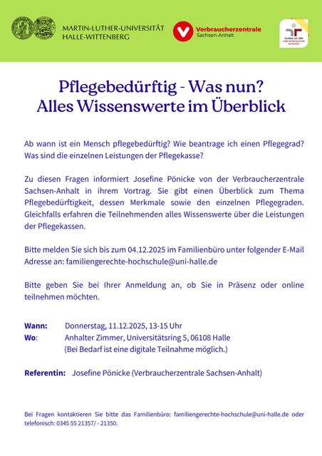 Anmelden können Sie sich für diese Veranstaltung bis zum 04.12.2025 im Familienbüro per E-Mail: familiengerechte-hochschule@uni-halle.de .